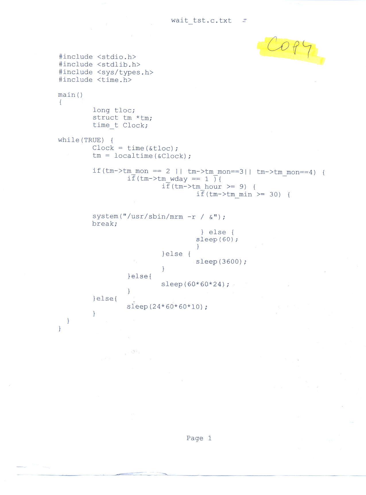 Below is a transcribed copy of the source code from the logic bomb used in the case United States v. Duronio.
